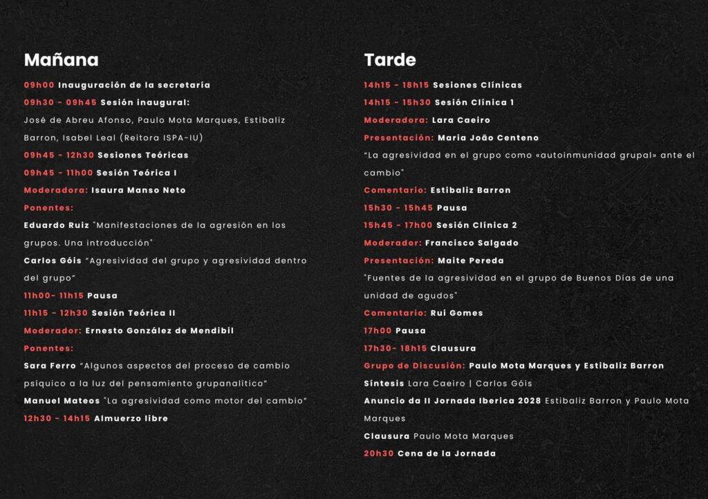 DESCARREGUE AQUI O PROGRAMA da I JORNADA IBÉRICA DE GRUPANÁLISE E PSICOTERAPIA ANALÍTICA DE GRUPO